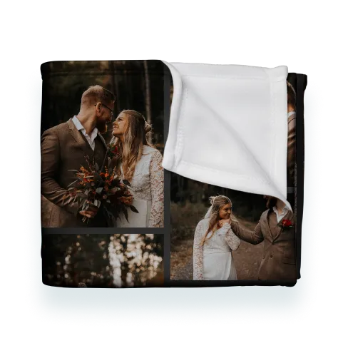 Unique home décor is always appreciated, especially when it perfectly matches the style of the couple. Options include tabletop photo panels, throw pillows, or even a beautiful glitter block photo frame with a picture of them saying “I do”. If you want to create something for the couple before their big day and don’t have photos, a rustic chic woven blanket with their names and wedding date is the perfect item. Other great gift options for the newlyweds when you don't have any photos include Christmas ornaments with their new shared last name and wedding date, or a “Just Married!” beach towel for their honeymoon.
